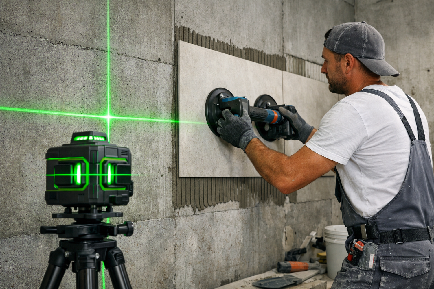 Gebruikt voor zware 80x80 tegels. Hij houdt het vacuüm muurvast en spaart echt mijn rug. Had ik jaren eerder moeten hebben.